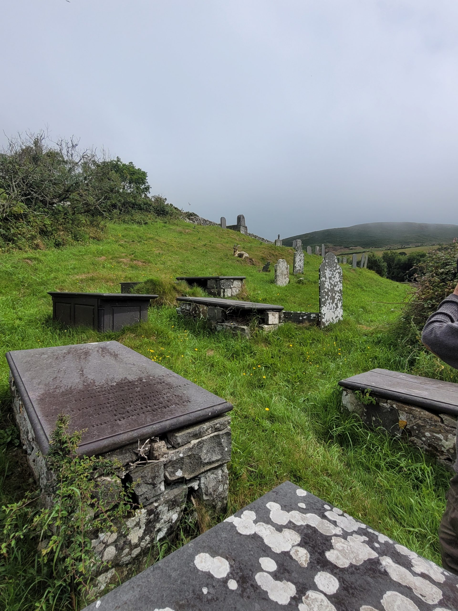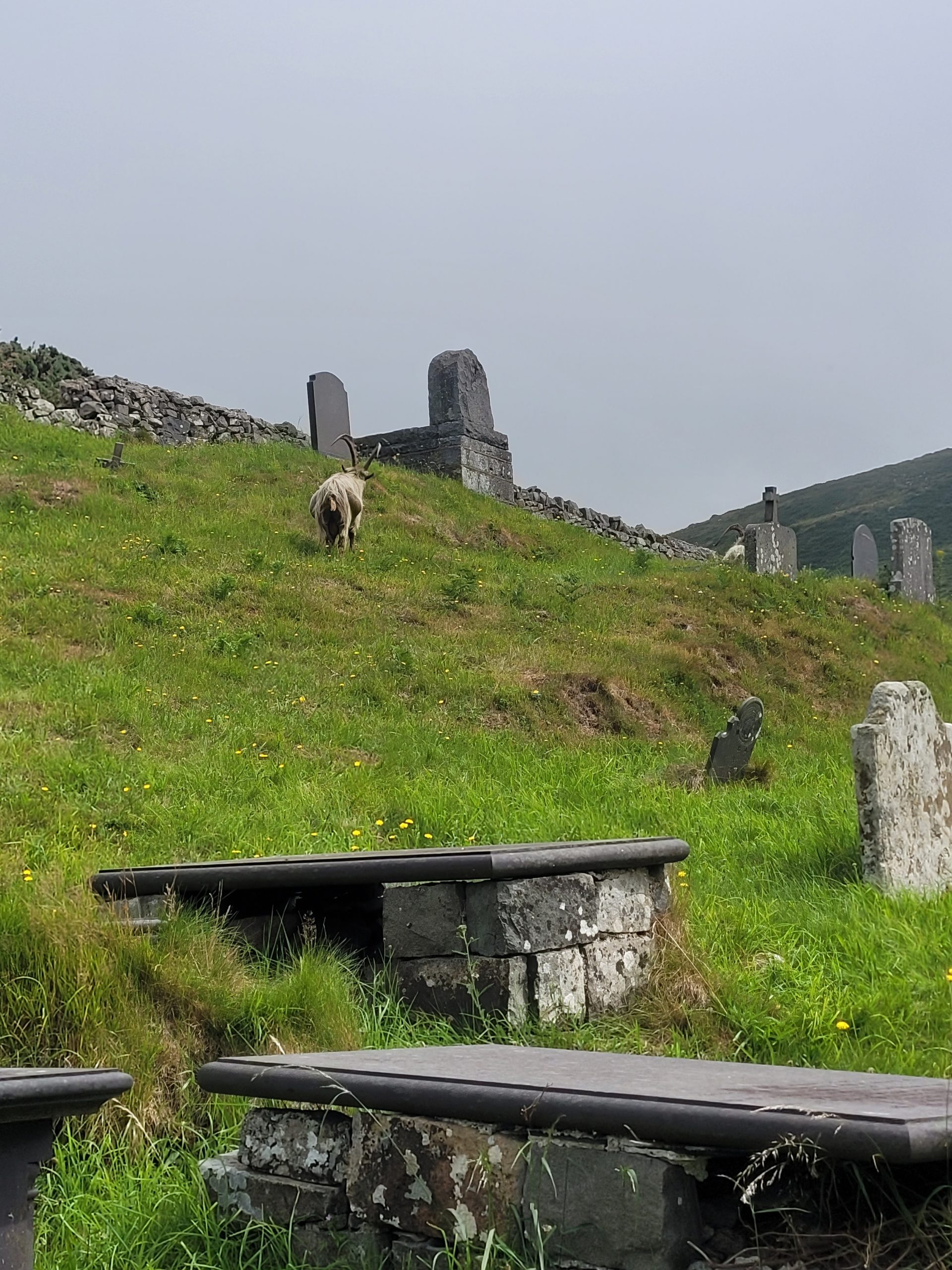 À noter la présence des chèvres sauvages (old irish goats) en liberté dans le cimetière de l’église, lesquelles auraient pu servir de modèle à Arthur Rackham pour illustrer Peter Pan dans les Jardins de Kensington. C’est ainsi que tout est lié dans mon univers. Il n’est nul hasard pour qui habite le monde en poète.