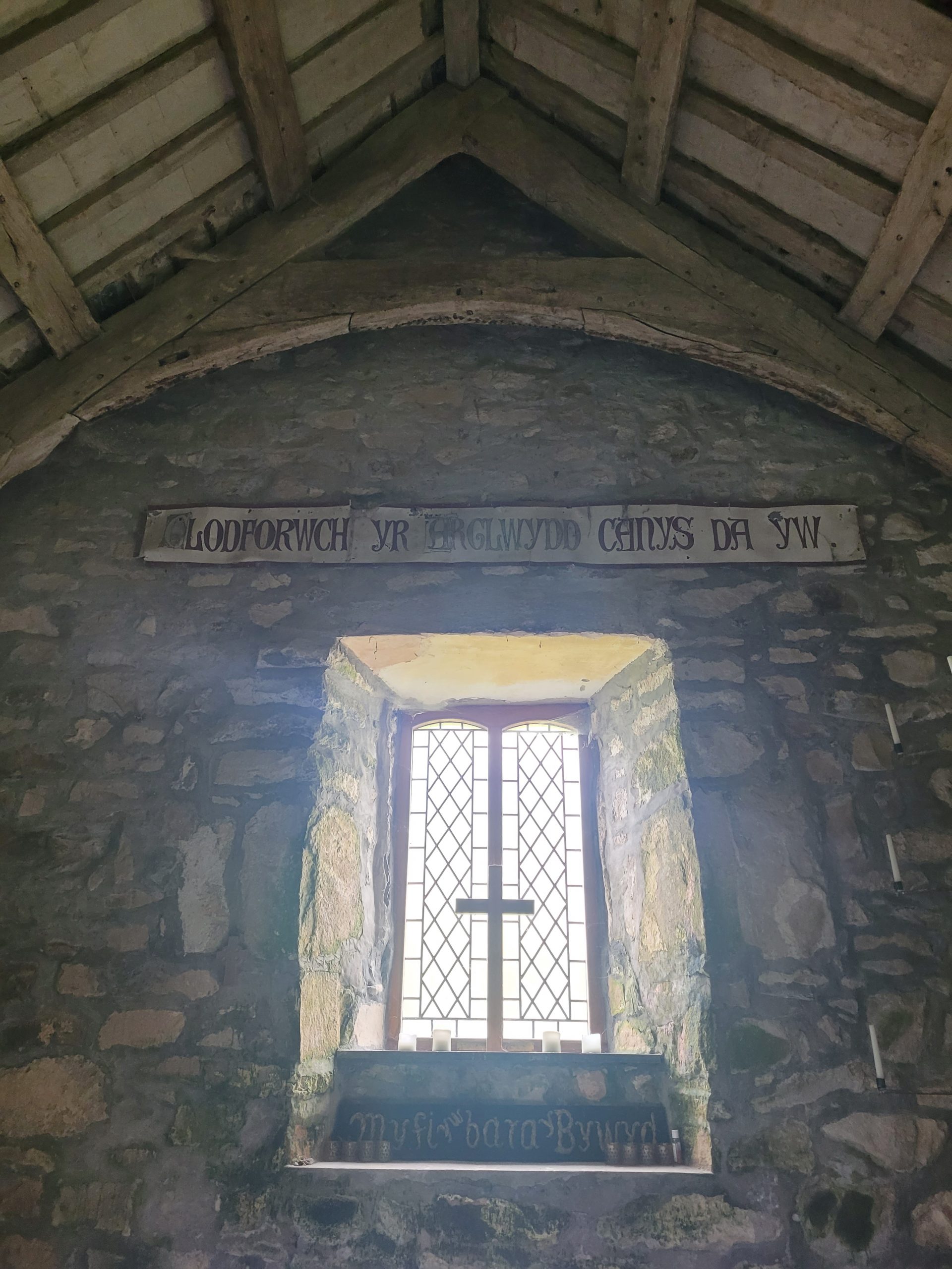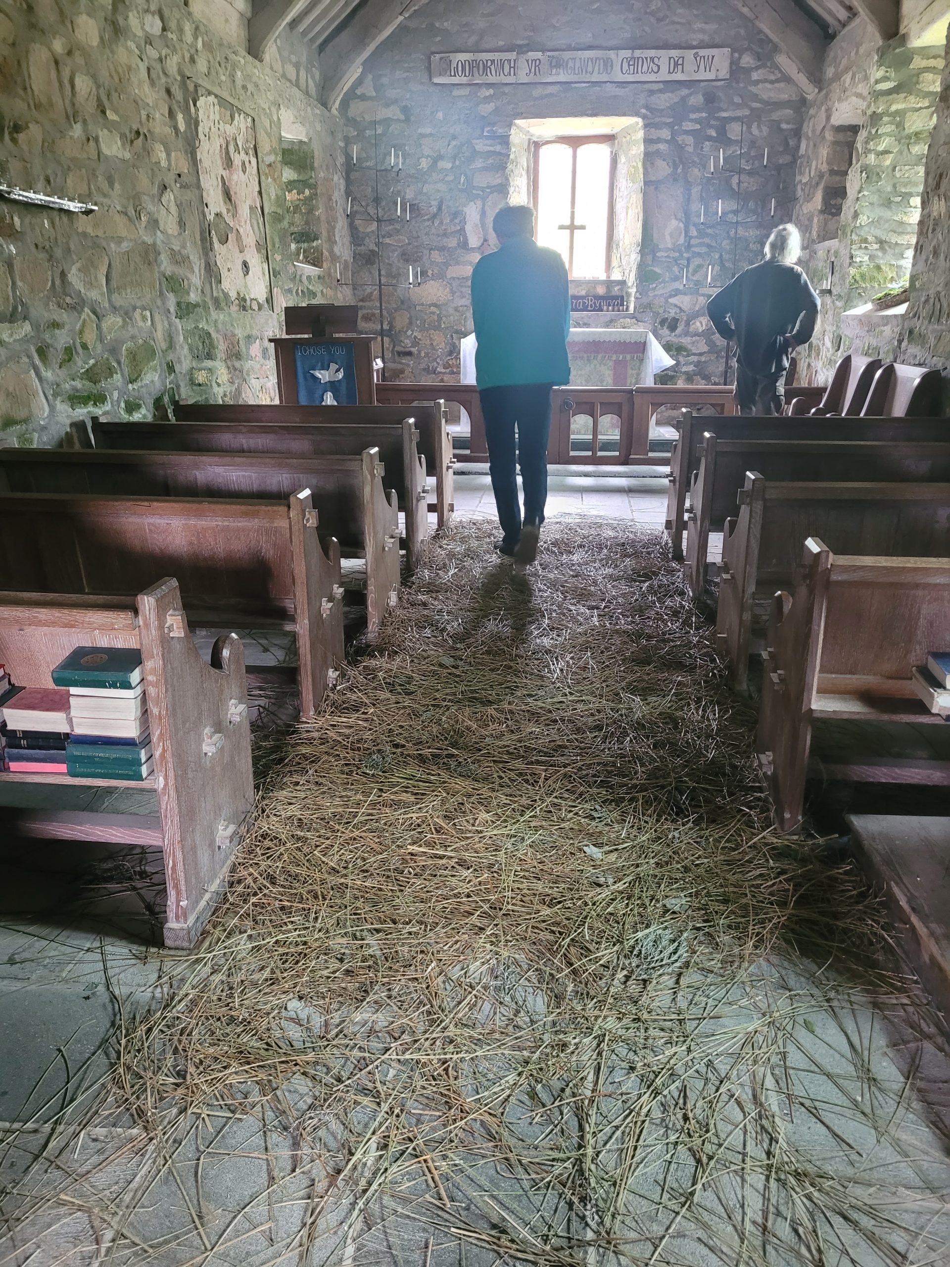 C’est une petite Église médiévale où est encore pratiquée la tradition du rushbearing (ici, rush = jonc + to bear = porter, supporter…), qui consiste à tapisser le sol de joncs, d’herbes et/ou de paille. « An annual ceremony in northern districts of carrying rushes and garlands to the church and strewing the floor or decorating the walls with them; usually made the occasion of a general holiday. » (Oxford English Dictionary) C’est une ancienne fête religieuse durant laquelle des joncs étaient ramassés et transportés pour être répandus sur le sol de l’église paroissiale. Cette tradition remonte à l’époque où la plupart des bâtiments avaient des sols en terre battue. Ces joncs déposés sur le sol assuraient propreté et isolation à l’église. La fête était répandue en Grande-Bretagne, dès le Moyen Âge, et parfaitement établie à l’époque élisabéthaine, mais elle déclina, fatalement, au début du XIXe siècle, lorsque les sols des églises furent pavés. Dans cette église du Pays de Galles, la tradition perdure de nos jours.